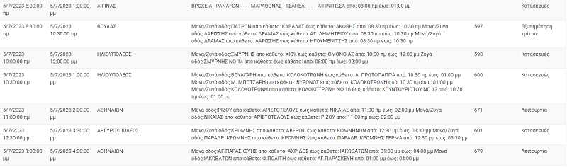 Δείτε τον πίνακα του ΔΕΔΔΗΕ: