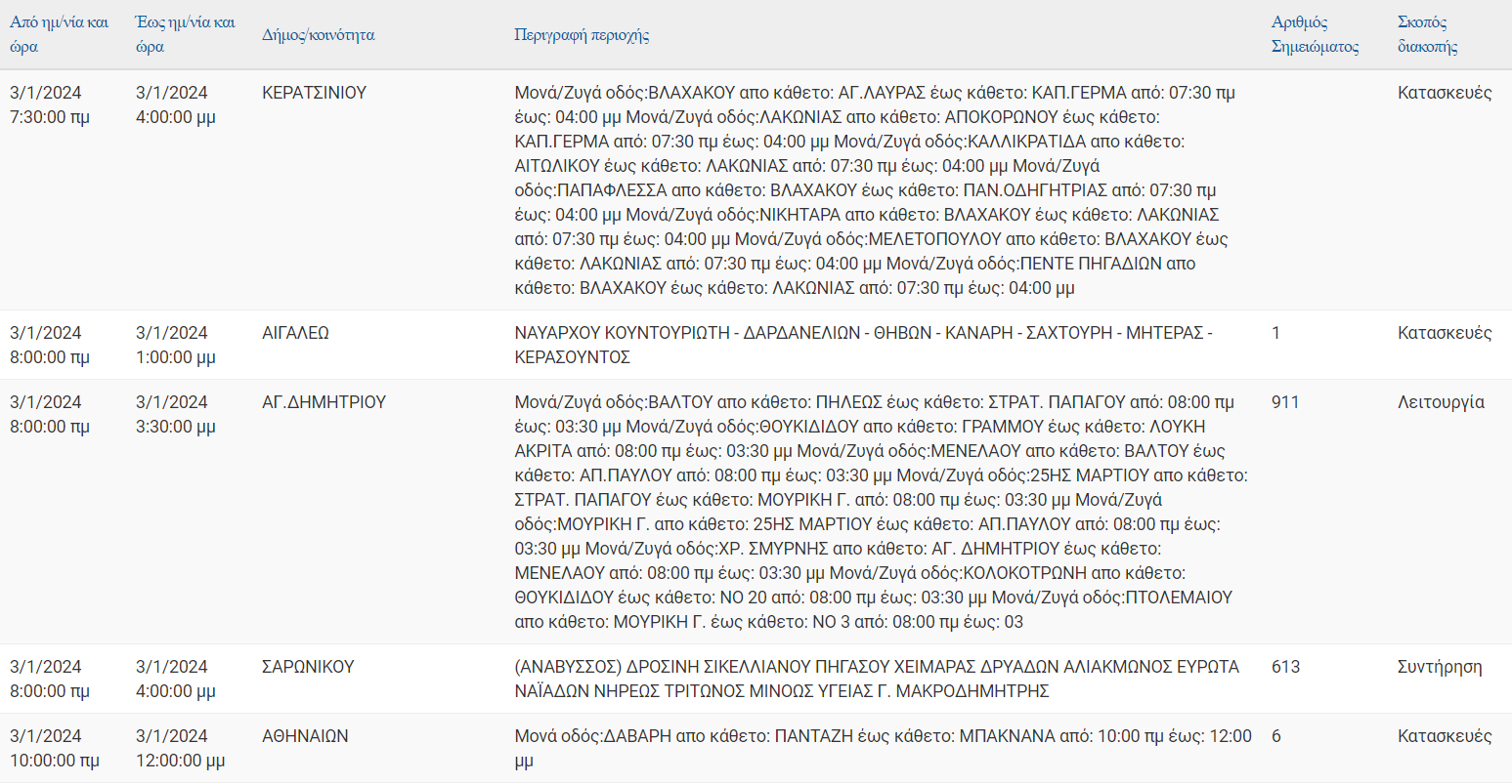 Ο ΔΕΔΔΗΕ, ανακοίνωσε πως σήμερα Τετάρτη 3 Ιανουαρίου, έχει προγραμματίσει διακοπή ρεύματος σε περιοχές της Αττικής.