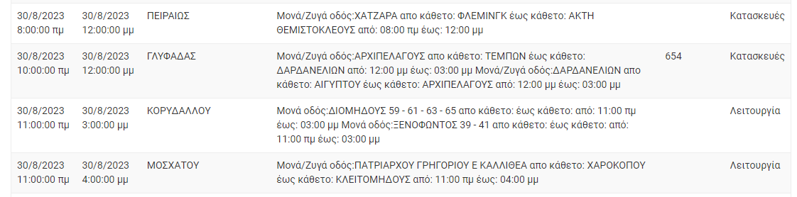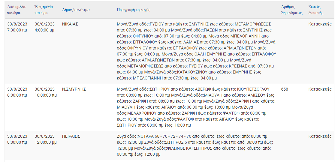 Ο ΔΕΔΔΗΕ, ανακοίνωσε πως σήμερα Τετάρτη 30 Αυγούστου θα προχωρήσει σε προγραμματισμένη διακοπή ρεύματος σε περιοχές της Αττικής.