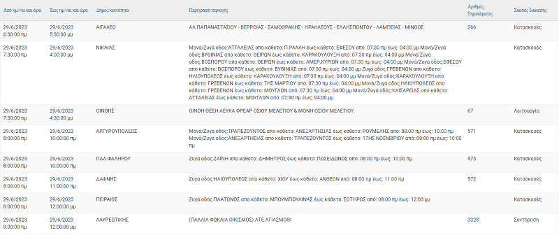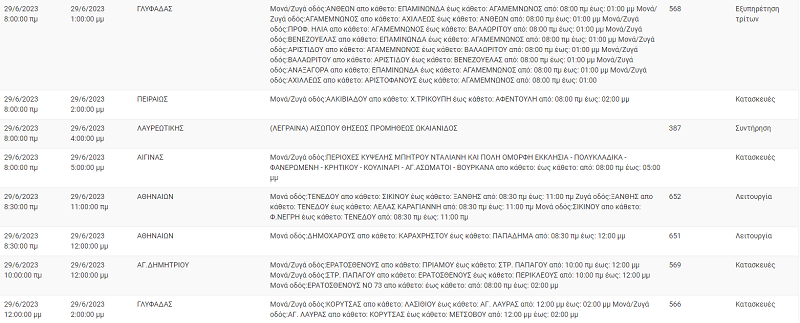 Οι περιοχές που θα επηρεαστούν από τη διακοπή ρεύματος: