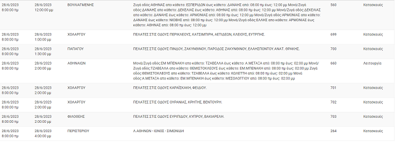 Σύμφωνα με τον ΔΕΔΔΗΕ, σήμερα Τετάρτη 28 Ιουνίου, έχει προγραμματιστεί διακοπή ρεύματος σε αρκετές περιοχές της Αττικής.