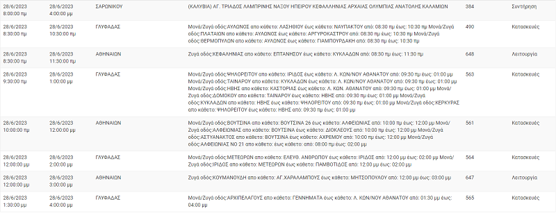 Αναλυτικά οι δρόμοι και οι ώρες