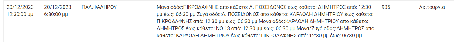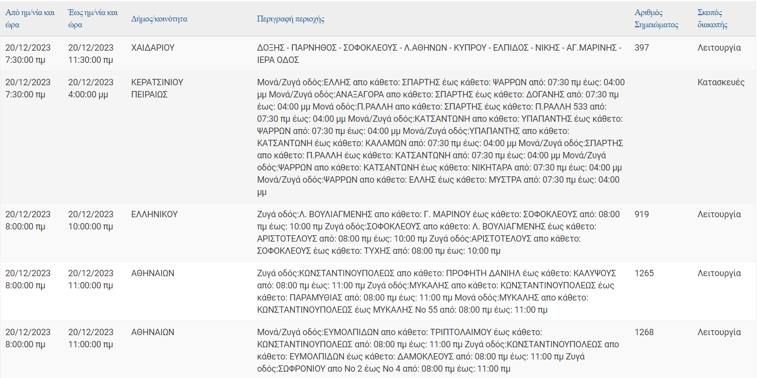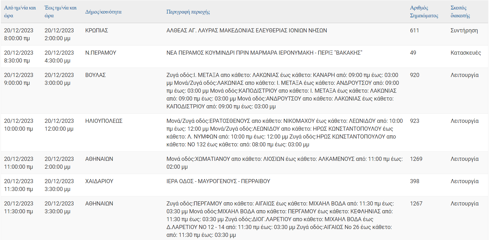 Ο ΔΕΔΔΗΕ, ανακοίνωσε πως σήμερα Τετάρτη (20/12) έχει προγραμματίσει διακοπή ρεύματος σε αρκετές περιοχές της Αττικής.