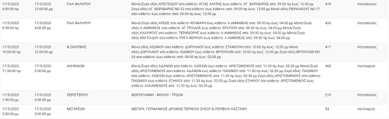 Οι περιοχές που θα επηρεαστούν από τη διακοπή ρεύματος: