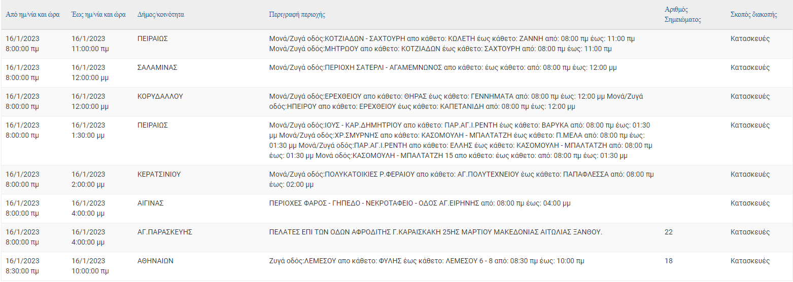 Οι περιοχές που θα επηρεαστούν από τη διακοπή ρεύματος: