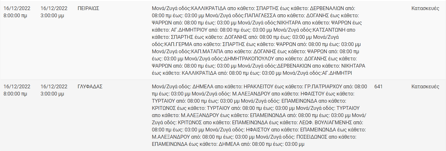 Οι περιοχές που θα επηρεαστούν από τη διακοπή ρεύματος: