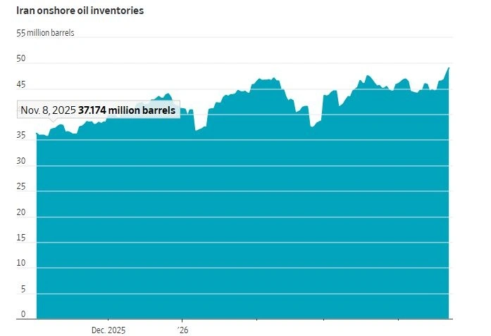 Για να διαχειριστεί το πλεόνασμα, η Τεχεράνη χρησιμοποιεί άδεια δεξαμενόπλοια ως πλωτές αποθήκες. Στον Περσικό Κόλπο παραμένουν πλοία με συνολική χωρητικότητα περίπου 15 εκατομμυρίων βαρελιών, αν και δεν μπορούν να φτάσουν εύκολα στις διεθνείς αγορές.