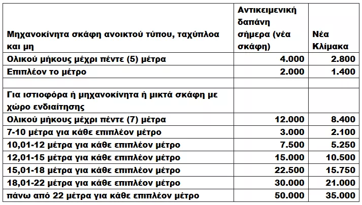 3) Μείωση κατά 30% στα τεκμήρια διαβίωσης για τα νεότερα σκάφη, καθώς οι δαπάνες συντήρησης δεν είναι υψηλότερες στα σκάφη αυτά σε σχέση με τα παλαιότερα. Σκοπός είναι η ενίσχυση της αγοραστικής δύναμης.