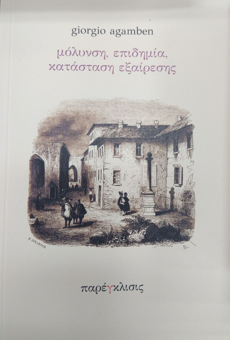 Από τις εκδόσεις “Παρέγκλισις” κυκλοφόρησαν προσφάτως επίκαιρα κριτικά σημειώματα του Giorgio Agamben υπό τον ενιαίο τίτλο “Μόλυνση, επιδημία, κατάσταση εξαίρεσης” (μτφ.: Π. Καλαμαράς, 2020· πρβλ. και το αφιέρωμα “Ο Agamben & η επιδημία του φιλοσόφου”, εις: Νέος Ερμής ο Λόγιος, Έτος 10ο, Τεύχ. 20, α΄ εξάμηνο 2020, σελ. 68 επ.). O Ιταλός φιλόσοφος, ο οποίος έχει δεχθεί τα πυρά όλων εκείνων που επικροτούν τα ληφθέντα μέτρα για την αντιμετώπιση της λεγόμενης υγειονομικής κρίσης με πρωτοφανή φανατισμό, σαν να μην υπάρχει δικαίωμα στην αμφισβήτησή τους (πρβλ. την θέση του συναδέλφου Ν. Αλιβιζάτου, ο οποίος στο από 25.3.2020 άρθρο του στην εφημερίδα Καθημερινή είχε χαρακτηρίσει τον μεν Agamben “προκλητικό στοχαστή”, τις δε απόψεις του “παλαβές”!), φωταγωγεί κάποιες αθέατες όσο και δυσάρεστες πτυχές της διαμορφωθείσας κατάστασης.