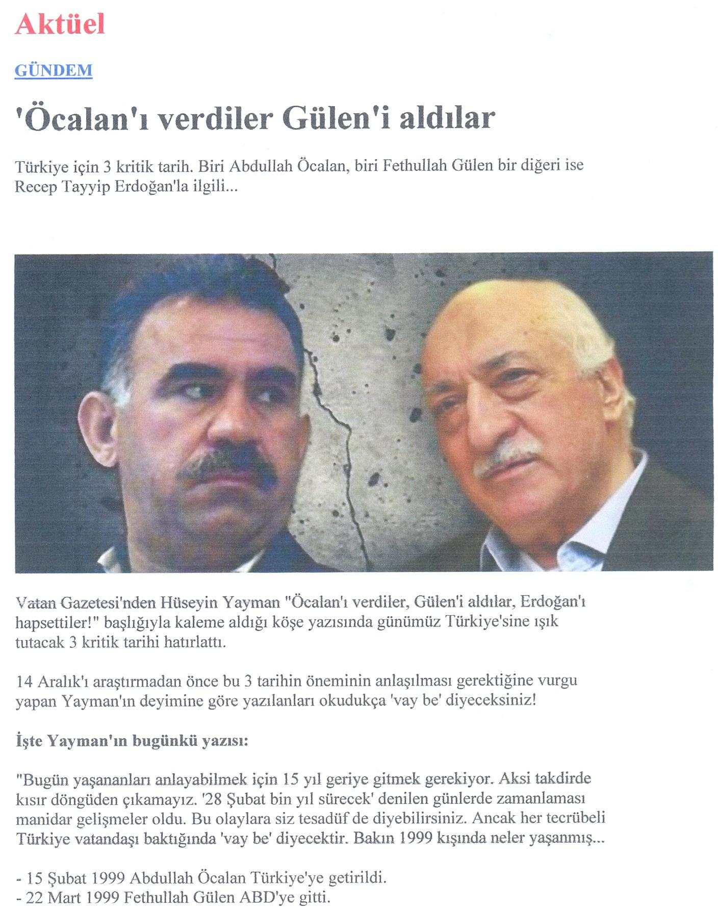 Το αντάλλαγμα της παράδοσης του Οτσαλάν από τους Αμερικανούς στους Τούρκους, ήταν η ανεμπόδιστη αναχώρηση του Φετουλάχ Γκιουλέν για τις ΗΠΑ. Οι Αμερικανοί από τότε σχεδίαζαν να προβάλλουν ένα δικό τους ισλαμικό μοντέλο στον μουσουλμανικό κόσμο που θα το έλεγχαν απόλυτα μέσω του Φετουλάχ Γκιουλέν, του μεγάλου «Αποστόλου του Ισλάμ», όπως τον έχει χαρακτηρίσει ο αμερικανικός τύπος ενώ έχει βραβευτεί από μια σειρά διάσημων αμερικανικών πανεπιστημίων.