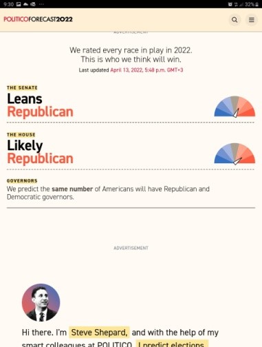 Όλα τα ινστιτούτα που εξειδικεύονται σε εκλογικές προβλέψεις τον φέρνουν να χάνει και στις εκλογές για τη Βουλή των Αντιπροσώπων και οριακά στη Γερουσία.