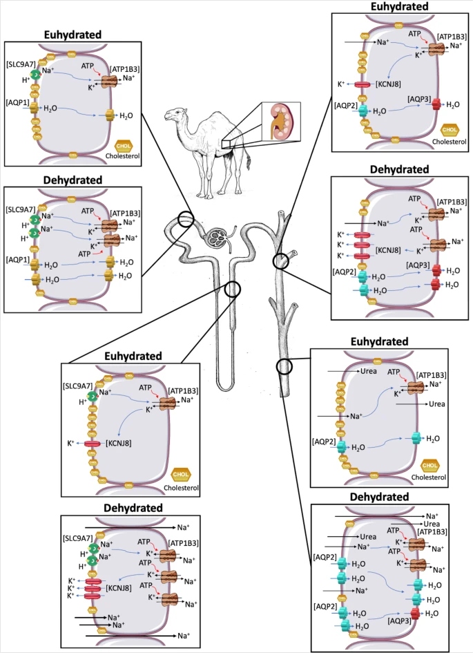 Σε μία έρευνα η οποία εξέτασε τα γονίδια των κυττάρων στα νεφρά των αραβικών καμήλων (Camelus dromedarius), αποκαλύφθηκε πως η ποσότητα της χοληστερόλης στα νεφρά παίζει ρόλο στη διαδικασία διατήρησης του νερού, κάνοντας τις καμήλες να παράγουν πολύ πυκνά ούρα για να μη χάνουν νερό.