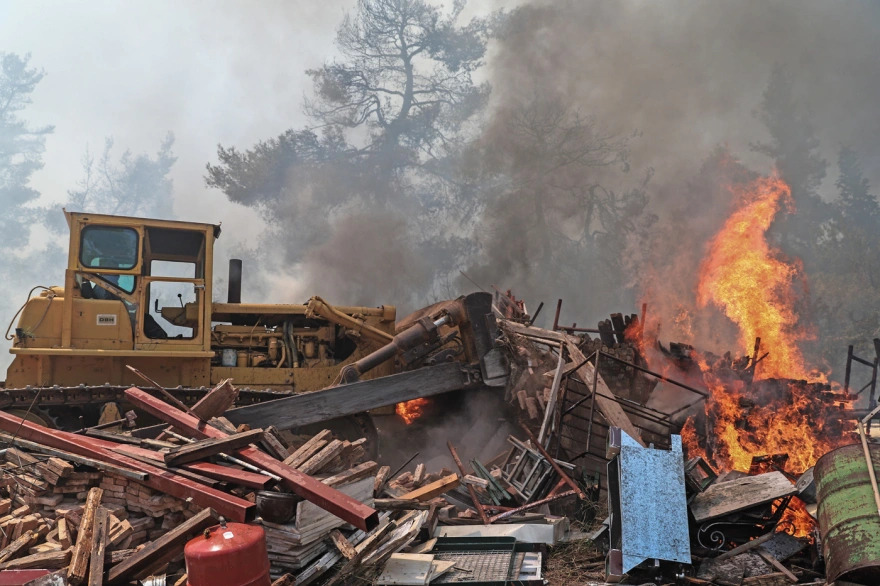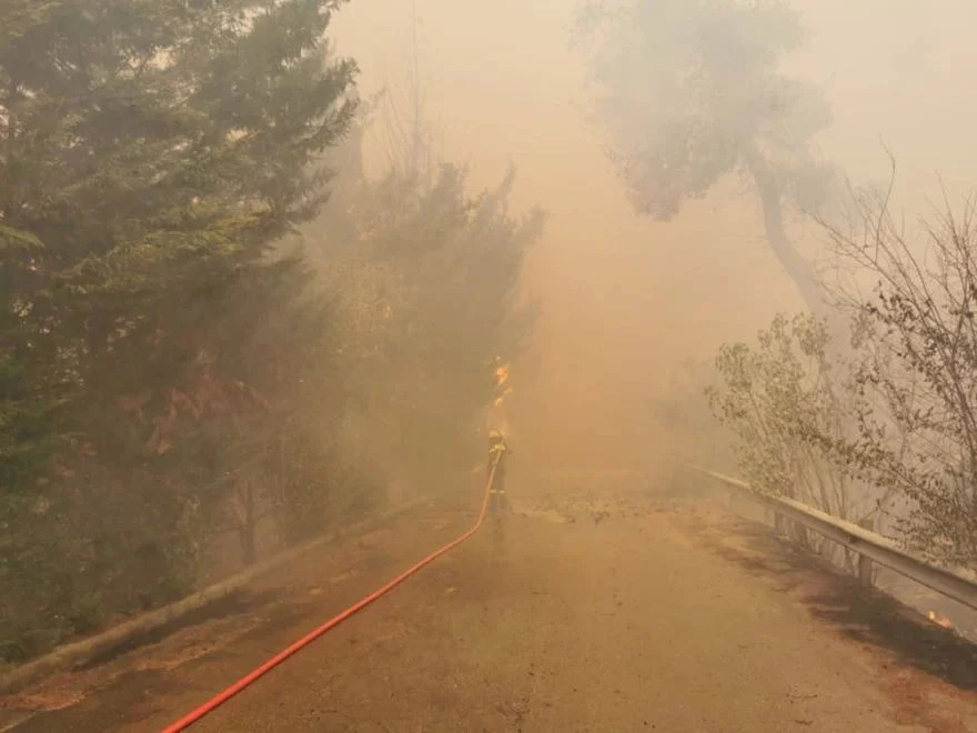Οι φλόγες οι οποίες πλέον έχουν περάσει τις μάντρες των σπιτιών και έχουν μπει στις αυλές, με το πύρινο μέτωπο να εξαπλώνεται ραγδαία.