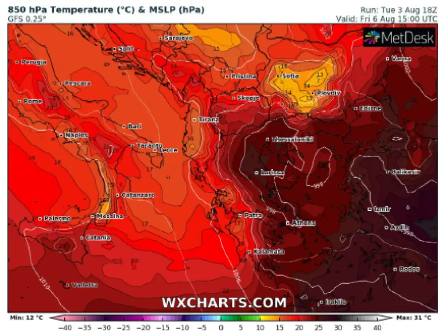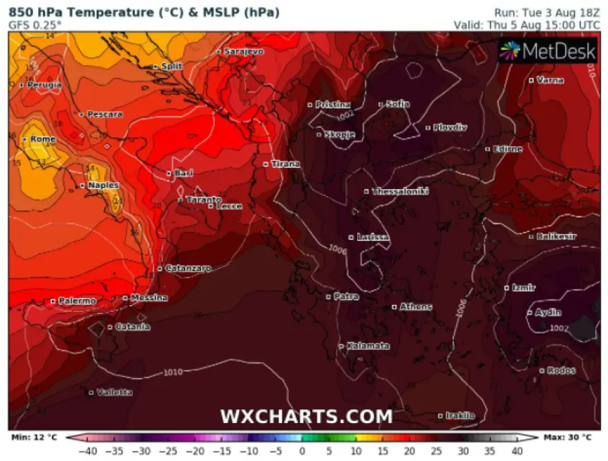 Θερμοκρασία: Από 27 έως 40 και κατά τόπους 41 βαθμούς Κελσίου.