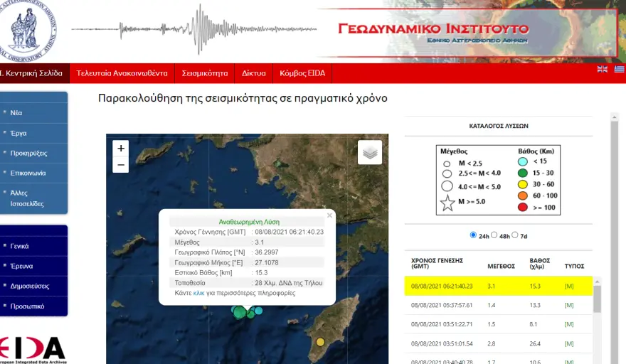 Σεισμική δόνηση μεγέθους 3,1 βαθμών της κλίμακας Ρίχτερ σημειώθηκε το πρωί της Κυριακής στην Τήλo.