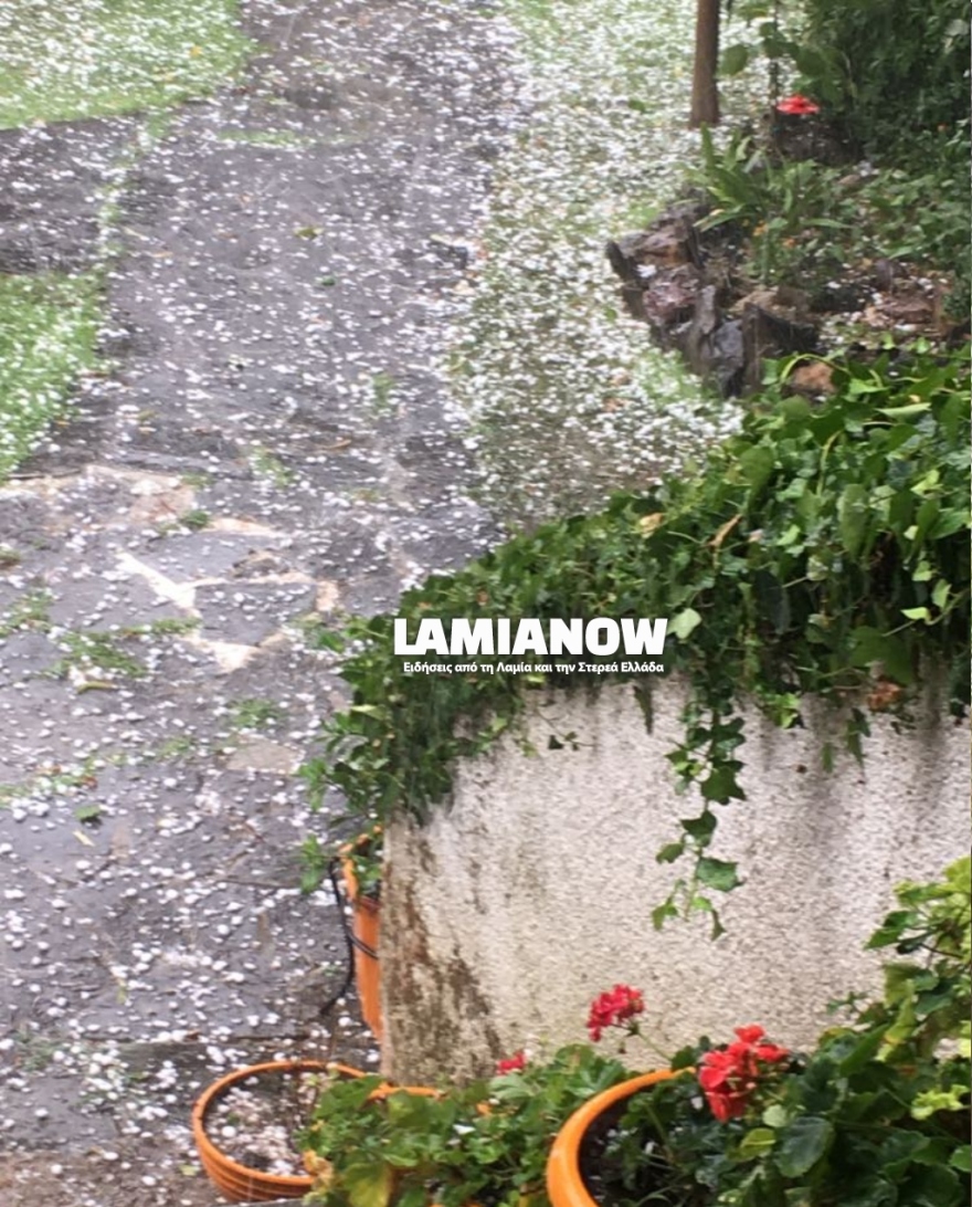 Το ξαφνικό μπουρίνι στην ευρύτερη περιοχή της Λαμίας έφερε μέχρι και… χαλάζι. Στις εικόνες που βλέπετε από τη Συκά Υπάτης βλέπετε το χαλάζι σε -μεγάλο μέγεθος- να έχει σκεπάσει την αυλή του σπιτιού.