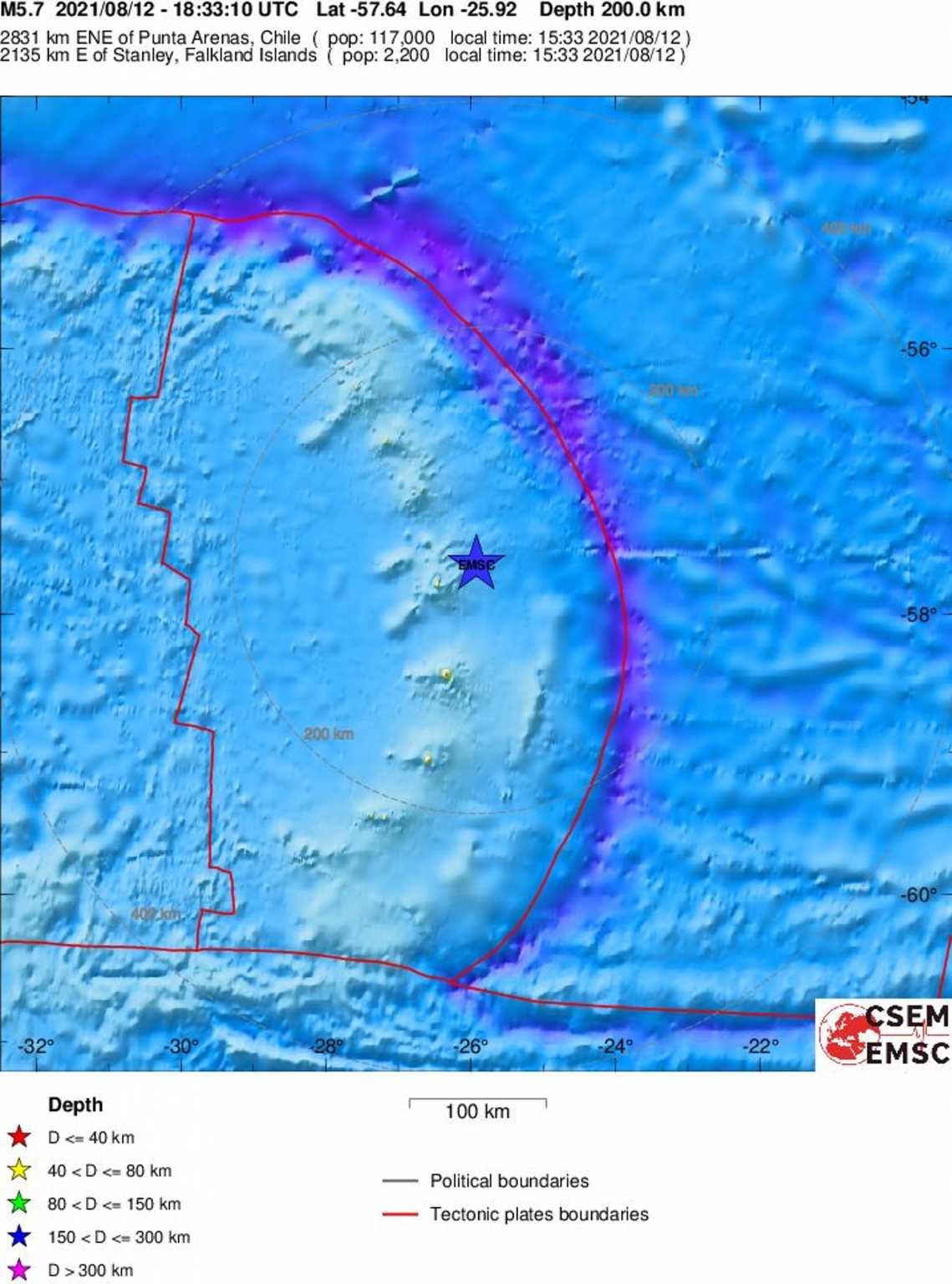 Ισχυρή σεισμική δόνηση μεγέθους 7,5 βαθμών της κλίμακας Ρίχτερ σημειώθηκε στα νησιά Νότιες Σάντουιτς όπως ανακοίνωσε το Ευρωπαϊκό-Μεσογειακό Σεισμολογικό Κέντρο.