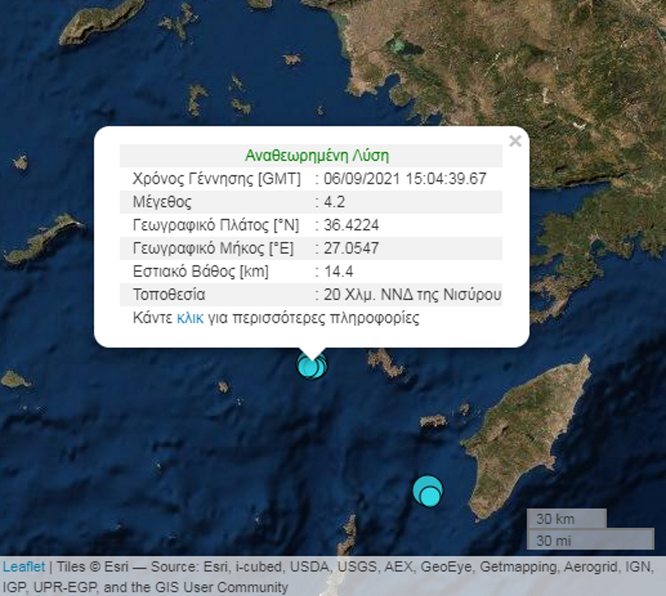 Ο σεισμός των 4,2 R στην Τήλο έχει επίκεντρο νότια – νοτιοδυτικά του νησιού, σε απόσταση 20 χιλιομέτρων.