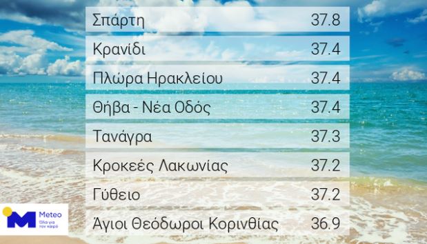 Στον πίνακα του meteo.gr παρουσιάζονται οι 8 υψηλότερες μέγιστες θερμοκρασίες έως το απόγευμα της Κυριακής, όπως καταγράφηκαν από το δίκτυο αυτόματων μετεωρολογικών σταθμών του Εθνικού Αστεροσκοπείου Αθηνών.