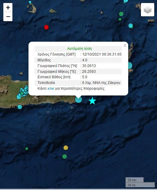 Δυνατός μετασεισμός μεγέθους 4 βαθμών της κλίμακας Ρίχτερ ακολούθησε τον ισχυρό σεισμό που έπληξε νωρίτερα την Κρήτη.