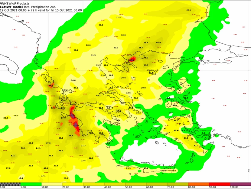 Την Παρασκευή (15-10-2021) η κακοκαιρία θα επηρεάσει αρχικά σε όλη τη χώρα, ενώ τα έντονα φαινόμενα όμως από τις απογευματινές ώρες στα βορειοδυτικά θα εξασθενήσουν. Το Σάββατο (16-10-2021) ισχυρές βροχές και καταιγίδες θα επηρεάσουν την ανατολική χώρα, αλλά βαθμιαία τα φαινόμενα θα εξασθενήσουν.