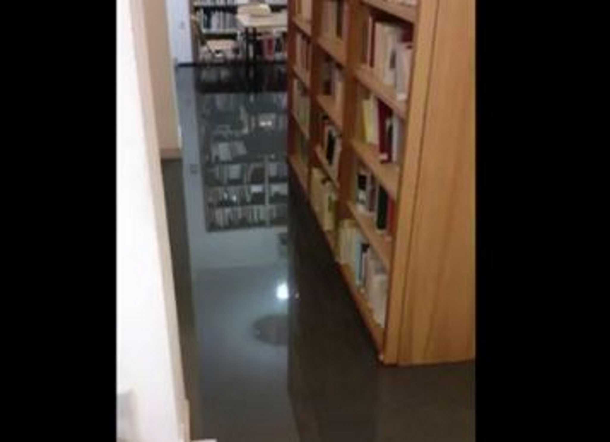 Το νερό στη βιβλιοθήκη του Παντείου Πανεπιστημίου φαίνεται να σταμάτησε ακριβώς λίγο πριν ξεκινήσει το πρώτο ράφι.