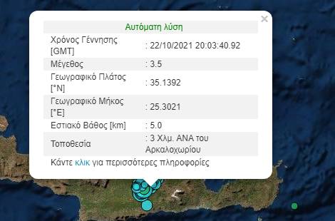 Συγκεκριμένα, νέα σεισμική δόνηση σημειώθηκε νωρίτερα στο Αρκαλοχώρι Κρήτης.