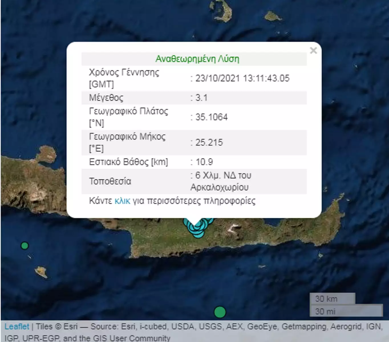 Επίκεντρο και των δύο δονήσεων η περιοχή νότια του Αρκαλοχωρίου του Δήμου Μινώα Πεδιάδας του Ηρακλείου Κρήτης, αναστατώνοντας ξανά τους κατοίκους.