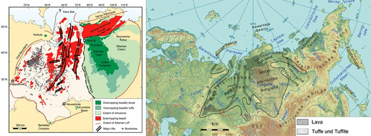 Στα απώτερα βόρεια της Παγγαίας, εκεί που είναι σήμερα η Σιβηρία, εξερράγη ένα υπερηφαίστειο βιβλικών διαστάσεων. Η έκρηξη ήταν τόσο πελώρια και καταστροφική που το μάγμα κάλυψε μια περιοχή σαν τις σημερινές ΗΠΑ. Υπολείμματα της γεωλογικής αυτής δραστηριότητας εντοπίζονται ακόμα και σήμερα σε μια μεγάλη έκταση της Σιβηρίας.