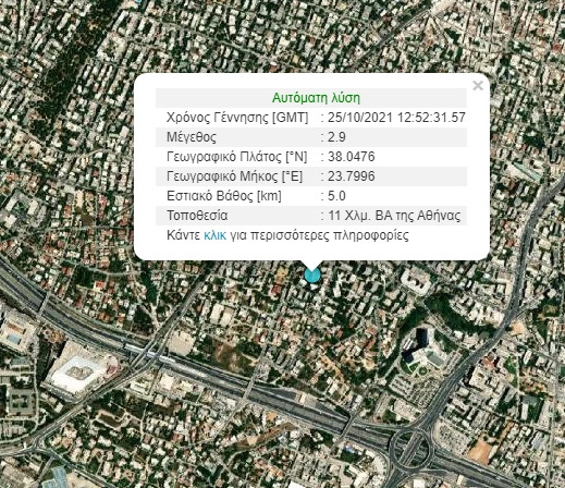 Σεισμική δόνηση 2,9 Ρίχτερ έγινε ιδιαίτερα αισθητός λίγο πριν τις 4 το μεσημέρι στο λεκανοπέδιο της Αττικής.