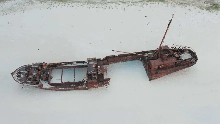 Το «κουφάρι» του πλοίου που βρίσκεται στο κέντρο της και αποτέλεσε και την αφορμή για την ονομασία της, από το ναυάγιο της 1ης Οκτωβρίου του 1980, ο «Παναγιώτης» έχασε ένα μεγάλο του κομμάτι.