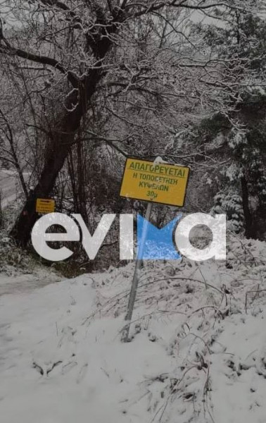 Το χωριό της Στενής του Δήμου Διρφύων Μεσσαπίων στην Εύβοια, μετά το πέρασμα της νέας κακοκαιρίας από το νησί «θάφτηκε» κάτω από το χιόνι.