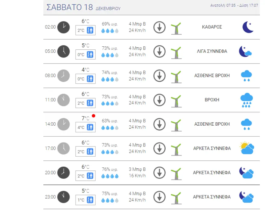 Οι άνεμοι θα πνέουν βόρειοι τρία με πέντε μποφόρ, ενώ η θερμοκρασία θα κυμανθεί από 06 έως 10 βαθμούς Κελσίου.