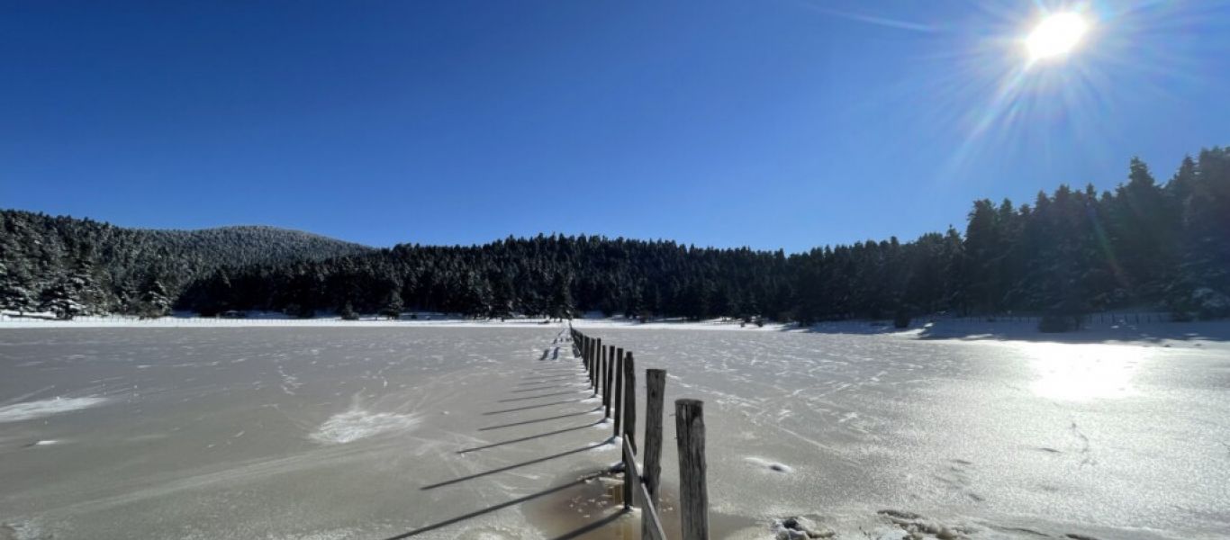 Μπορεί η λίμνη να είναι γνωστή για την ομορφιά της στους θαυμαστές του Ράλι Ακρόπολις, ωστόσο η χειμερινή της εικόνα είναι εξίσου όμορφη.