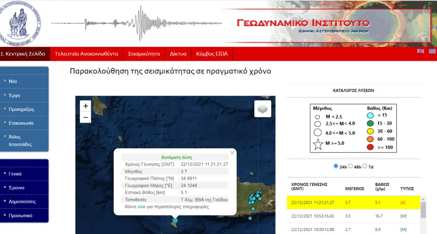 Ειδικότερα, το επίκεντρο του σεισμού εντοπίστηκε στα επτά χιλιόμετρα βόρεια βορειοανατολικά της Γαύδου.