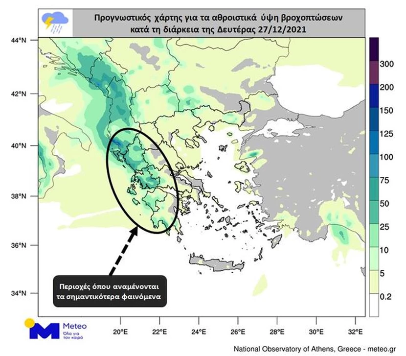 Σύμφωνα με τα προγνωστικά στοιχεία του Εθνικού Αστεροσκοπείου Αθηνών / meteo.gr, βροχοπτώσεις και σποραδικές καταιγίδες αναμένεται να εκδηλωθούν τη Δευτέρα 27/12 σε αρκετές περιοχές της χώρας.