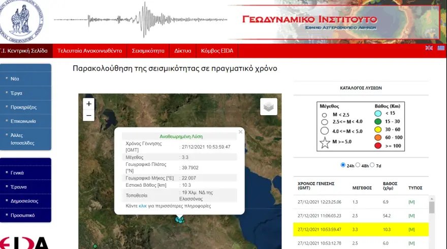Δείτε πώς κατέγραψε το Γεωδυναμικό Ινστιτούτο του Εθνικού Αστεροσκοπείου Αθηνών τη σεισμική δόνηση:
