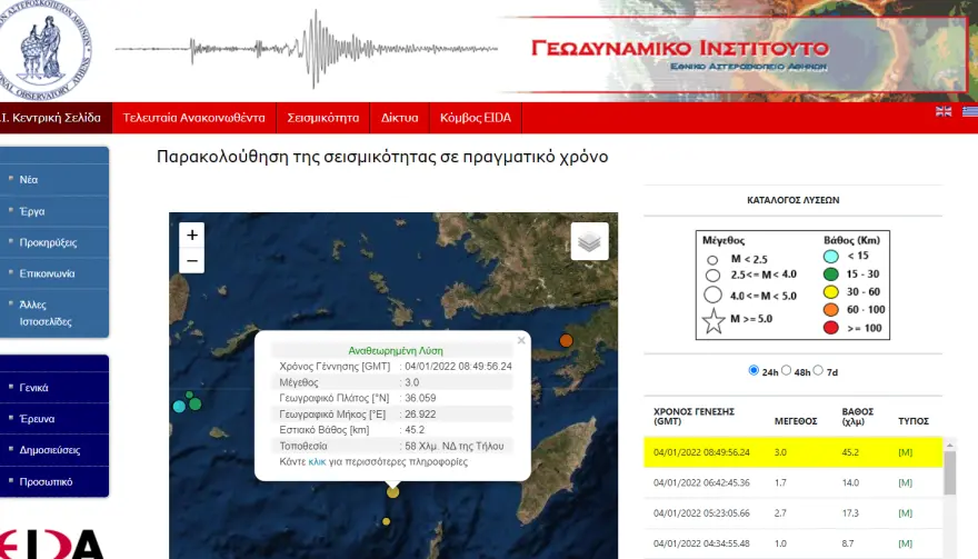 Σεισμική δόνηση μεγέθους 3 βαθμών της Κλίμακας Ρίχτερ σημειώθηκε πριν από λίγο στην Τήλο.