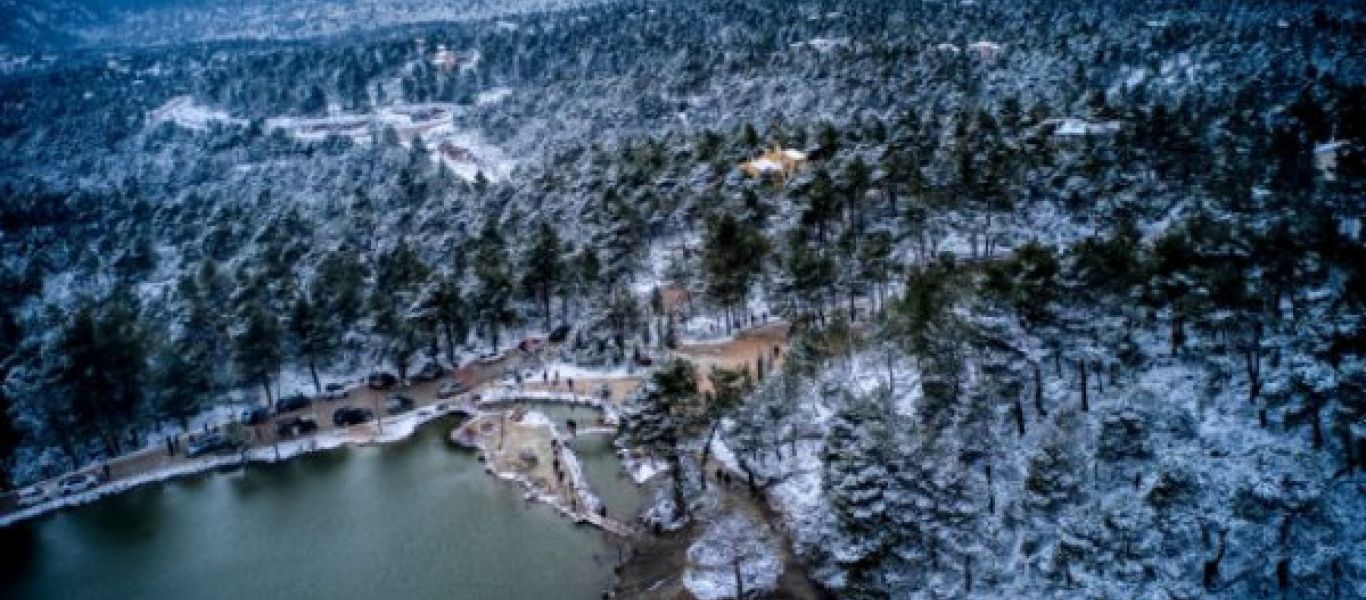Η κακοκαιρία «Ελπίς» κάλυψε με χιόνι την Πάρνηθα, όπου μικροί και μεγάλοι έσπευσαν για να χαρούν το εντυπωσιακό τοπίο.