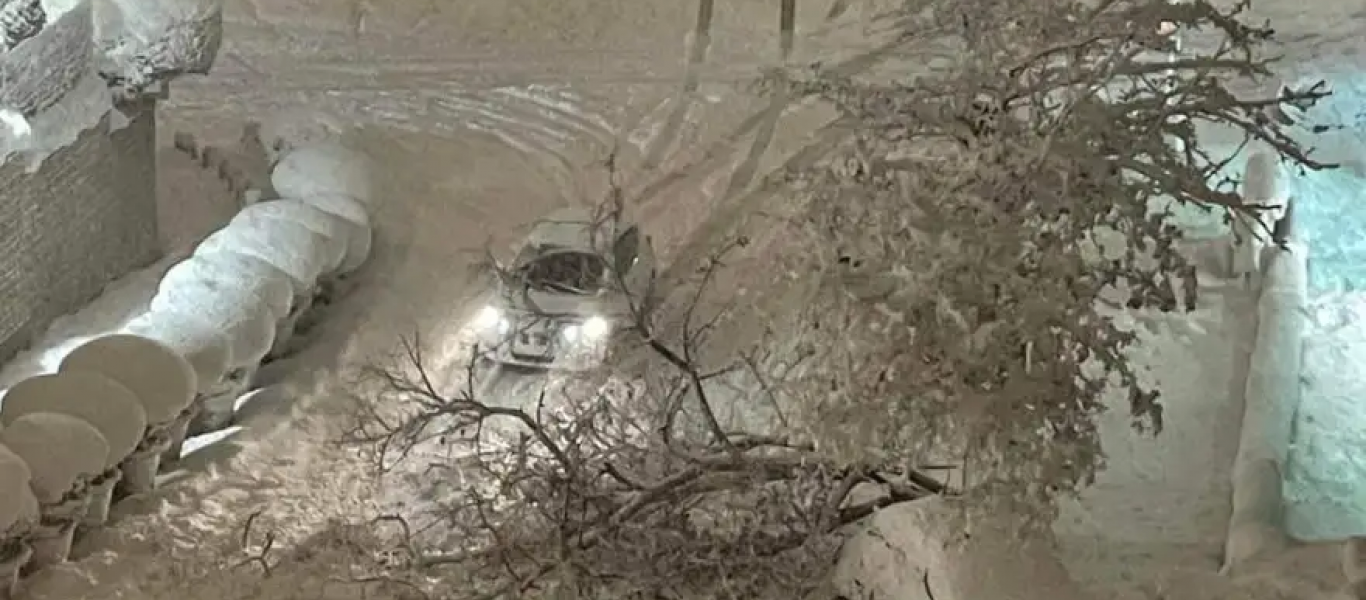 Την ίδια ώρα η μεγάλη ποσότητα του χιονιού σε πολλές περιπτώσεις έχει “λυγίσει” ακόμα και δέντρα, όπως στη διασταύρωση της Κηφισίας με την Κατεχάκη όπου σημειώθηκε πτώση δέντρου.