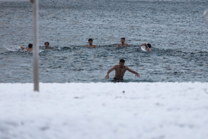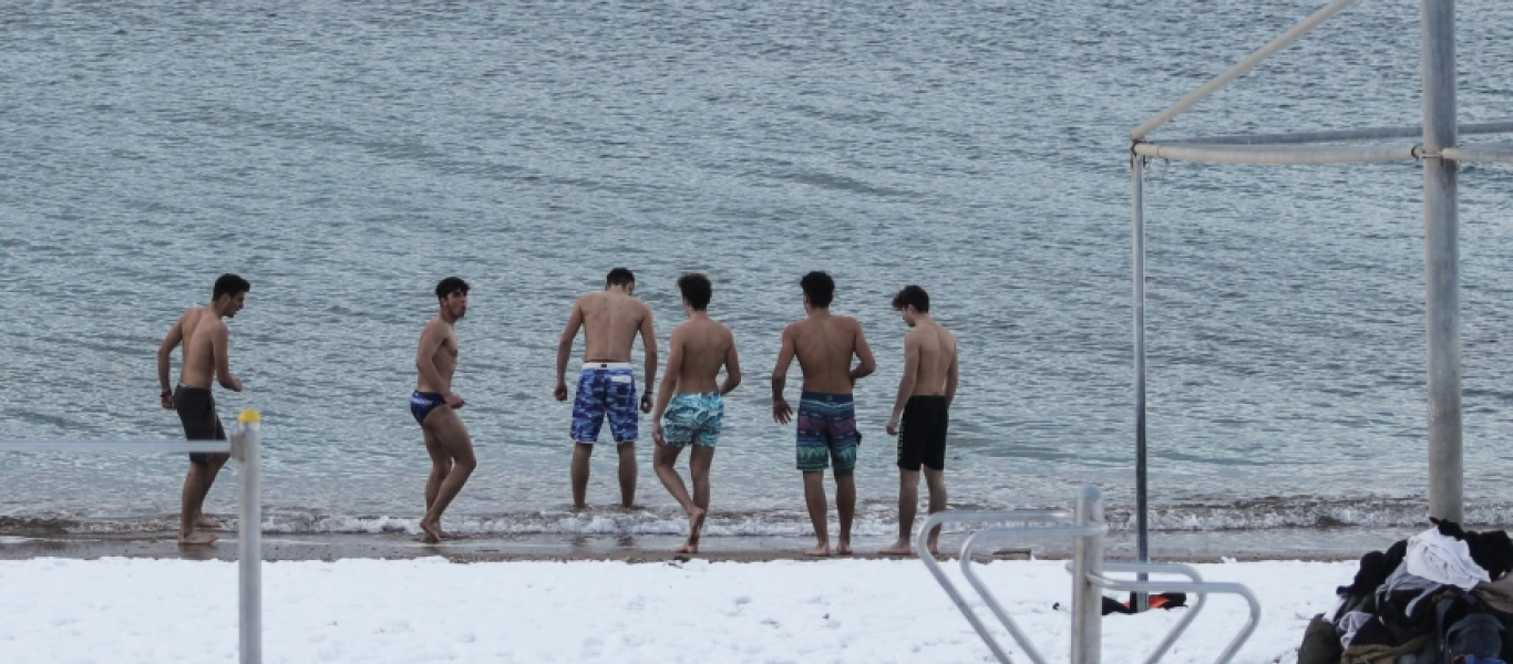 Νεαροί κολυμβητές «αψήφησαν» το κρύο και βούτηξαν στο χιονισμένο Παλαιό Φάληρο (φωτο)