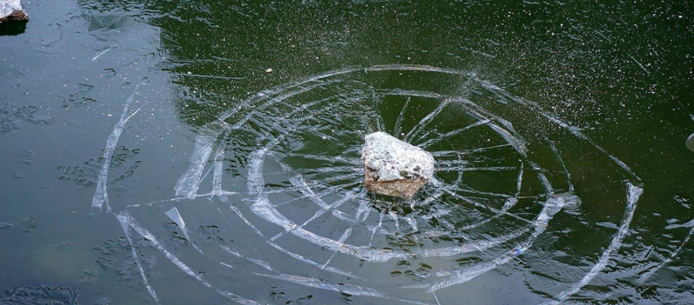 Εδώ και χρόνια τα έργα σταμάτησαν και η τρύπα έμεινε. Να γεμίζει από νερό κι αυτό να μετατρέπεται σε πάγο και όλο το σκηνικό να θυμίζει κάτι από ταινία.