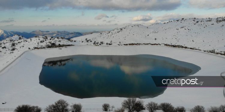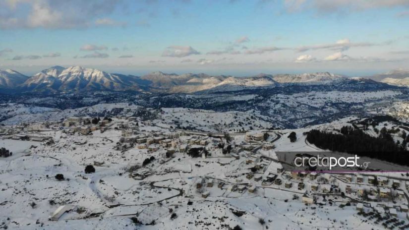 Τα ορεινά του Ψηλορείτη και τα Ανώγεια έχουν γεμίσει χιόνια, συνθέτοντας ένα εντυπωσιακό σκηνικό.