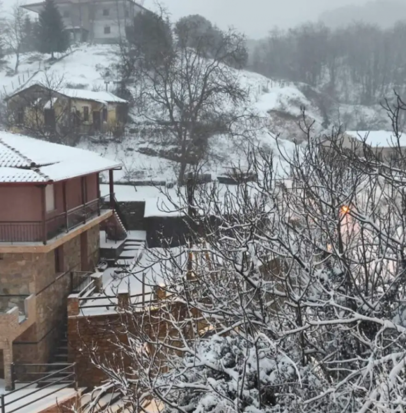 Οι κάτοικοι του γραφικού οικισμού ξύπνησαν σήμερα αντικρίζοντας το χιονισμένο τοπίο.