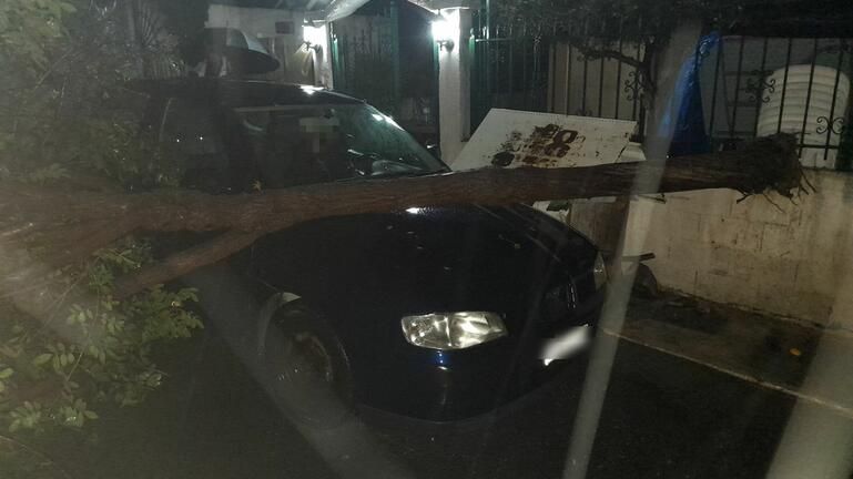Η φωτογραφία δημοσιεύθηκε στο Facebook και, όπως αναφέρει ο ιδιοκτήτης του αυτοκινήτου, όπου… προσγειώθηκε το δέντρο, δε χτύπησε κανείς και για το περιστατικό ειδοποιήθηκαν από γείτονες.