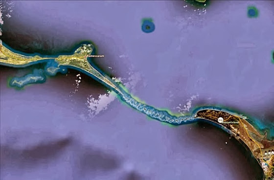 Οι Ινδοί τη λένε γέφυρα του Ράμα και έχουν ένα μύθο ότι την έχτισε ο Ράμα (είναι ο ήρωας του έπους Ραμαγιάνα) για να βρει τη γυναίκα του στην Σρι Λάνκα. Τα βάθη είναι μικρότερα από 11 m περίπου για 5 μίλια από κάθε μεριά της κορυφής. Τα βάθη μεγαλώνουν απότομα στα 183 m στα δώδεκα μίλια από τη γέφυρα.