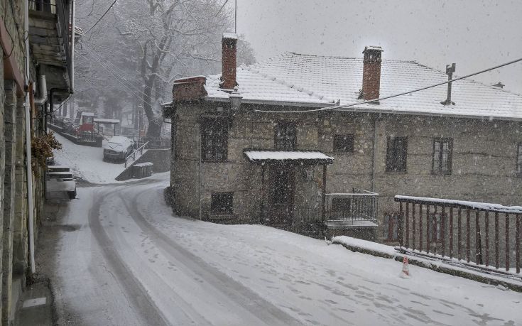 Πυκνό χιόνι πέφτει από τη νύχτα στα ορεινά της Ηπείρου με αποτέλεσμα πολλές περιοχές, ανάμεσά τους και το Μέτσοβο, να ντύνονται στα λευκά.