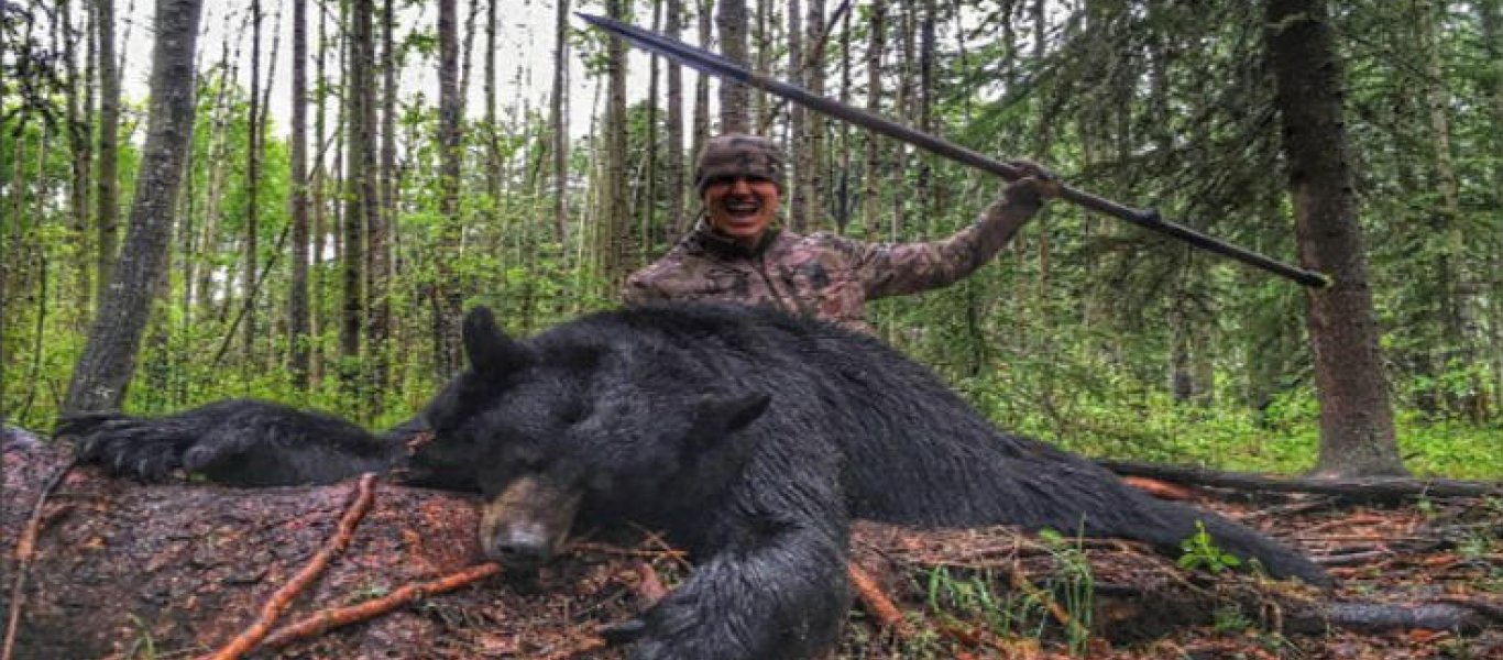 Φρίκη: Κυνηγός σκοτώνει μαύρη αρκούδα με αυτοσχέδιο όπλο και το απαθανατίζει! (βίντεο)