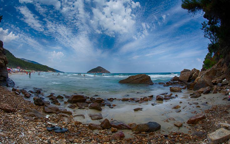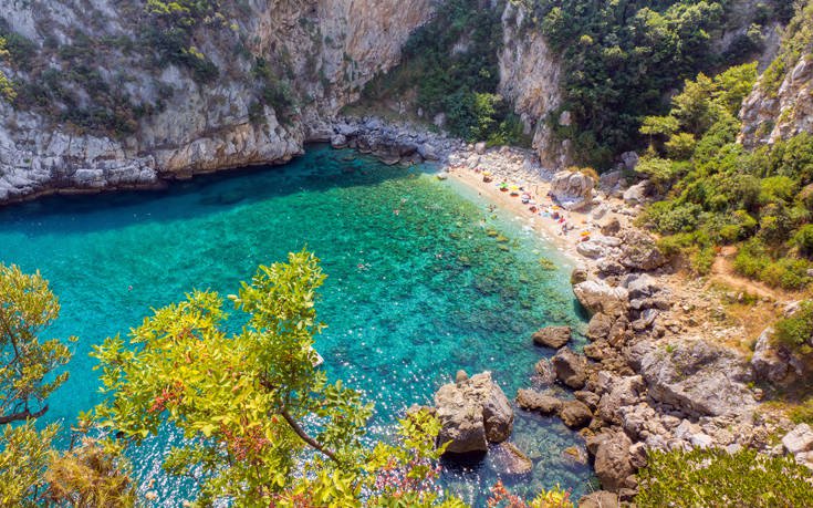 Ερημική -όχι το διάστημα της καλοκαιρινής αιχμής, προφανώς- με τη βλάστηση να φτάνει σχεδόν μέχρι εκεί που σκάνε τα νερά του Αιγαίου, με ψιλή άμμο και τους επιβλητικούς όγκους που την περιτριγυρίζουν, σε κάνει να μη μετανιώνεις στιγμή για την κοπιαστική διαδρομή.