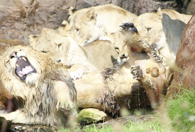 Οι εικόνες που προκαλούν δέος καταγράφηκαν από τις κάμερες των κινητών τηλεφώνων των επισκεπτών, ενώ η παρουσία τους στάθηκε αποτρεπτικός παράγοντας για την συνέχιση της επίθεσης, καθώς μόλις τα οχήματα πλησίασαν το σημείο, οι λέαινες υποχώρησαν, αφήνοντας το γηρασμένο αρσενικό σε ημιθανή κατάσταση.